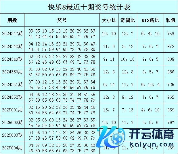 福彩欢快8第2025004期开奖总结:04 07 09 12 16 26 27 35 36 43 46 50 53 65 67 68 73 75 77 80,其中奖号奇偶比开出11:9,大小比开出11:9,012路比开出5:7:8,和值为869,跨度为76。