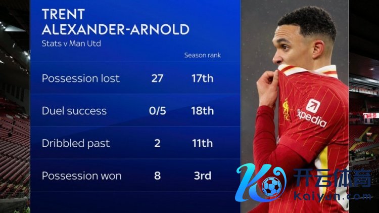 1月6日讯 英超第20轮比赛,利物浦主场2-2战平曼联,利物浦右后卫阿诺德此役线路欠安,天外体育统计了他本场比赛的部分数据。